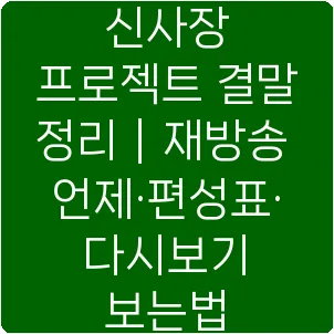 신사장 프로젝트의 재방송은 여러 채널에서 가능합니다. ENA 채널에서는 매주 월요일과 화요일 오전 10시 및 밤 12시에 방영하며, 본방송 이후 1주 단위로 재편성됩니다. tvN Drama는 주말 오전 9시와 오후 4시에 주요 인기 회차 중심으로 편성되어 방송됩니다.